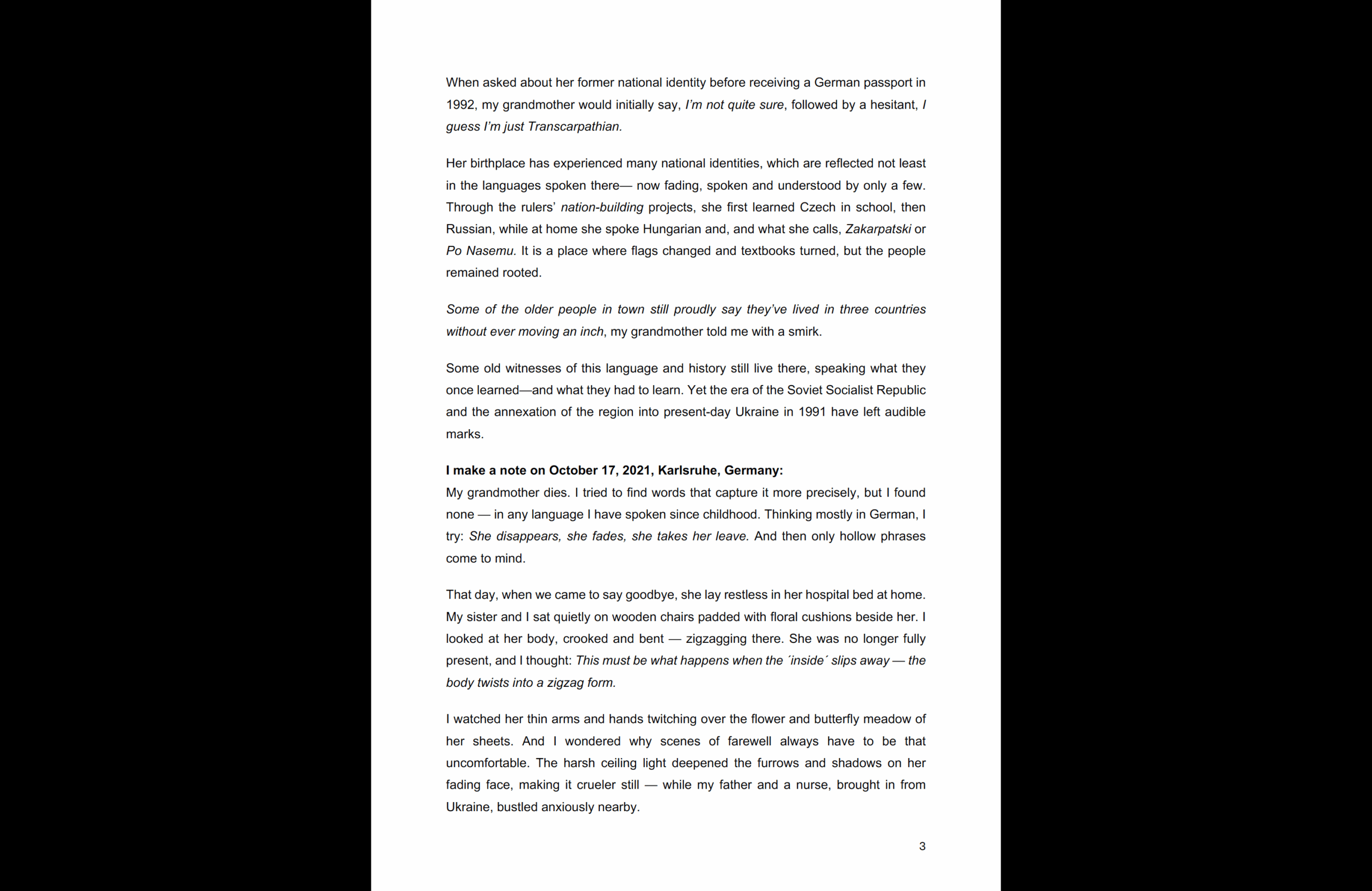 The performative reading on 14th of September, due to the finissage of Simultanhallenprojekte 2024, offers further insights into the work’s multiple layers.
